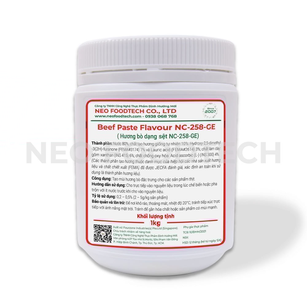 Beef Paste Flavour Nc-258-Ge dùng để tạo hương bò đặc trưng cho các sản phẩm như xúc xích bò, chả bò, bò viên, phở bò và các dòng sản phẩm cần tăng cường mùi thịt bò.