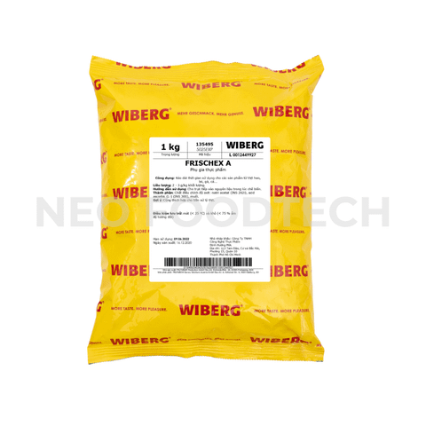 Tên sản phẩm: Frischex A- Công dụng: Chất bảo quản, kéo dài thời gian sử dụng cho các sản phẩm chế biến từ heo, bò, gà, cá,…