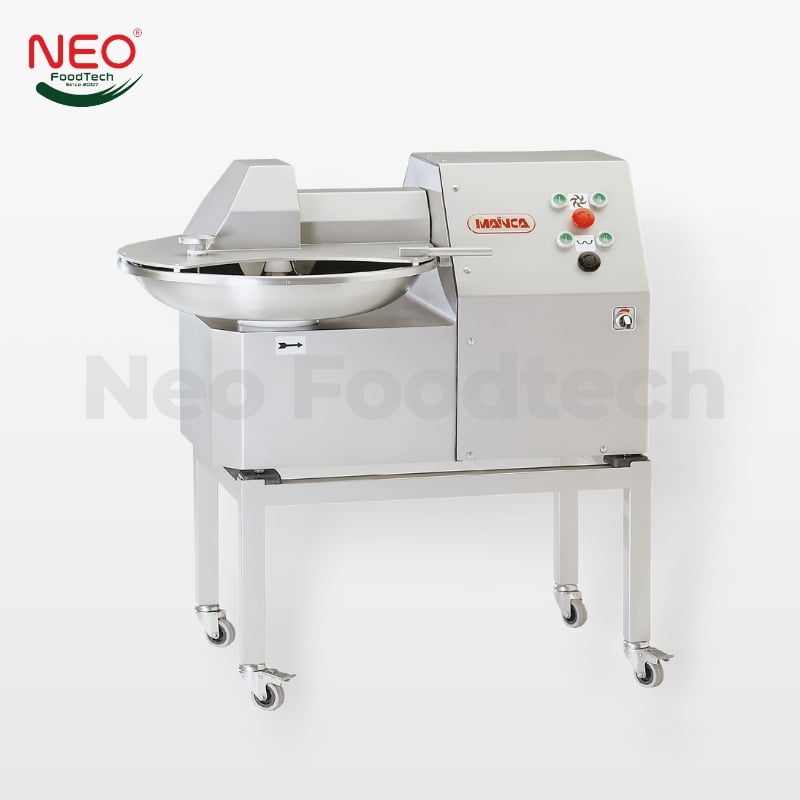 Thiết bị xay dạng chảo – Bowl Cutter là dòng máy xay nhũ tương đến từ thương hiệu Mainca – Tây Ban Nha, được thiết kế chuyên dụng cho nguyên liệu thịt, cá và các sản phẩm cần độ mịn cao. Thiết bị hoạt động theo nguyên lý xay trong chảo kết hợp hệ dao tốc độ cao, giúp tạo nhũ tương đồng đều và ổn định.